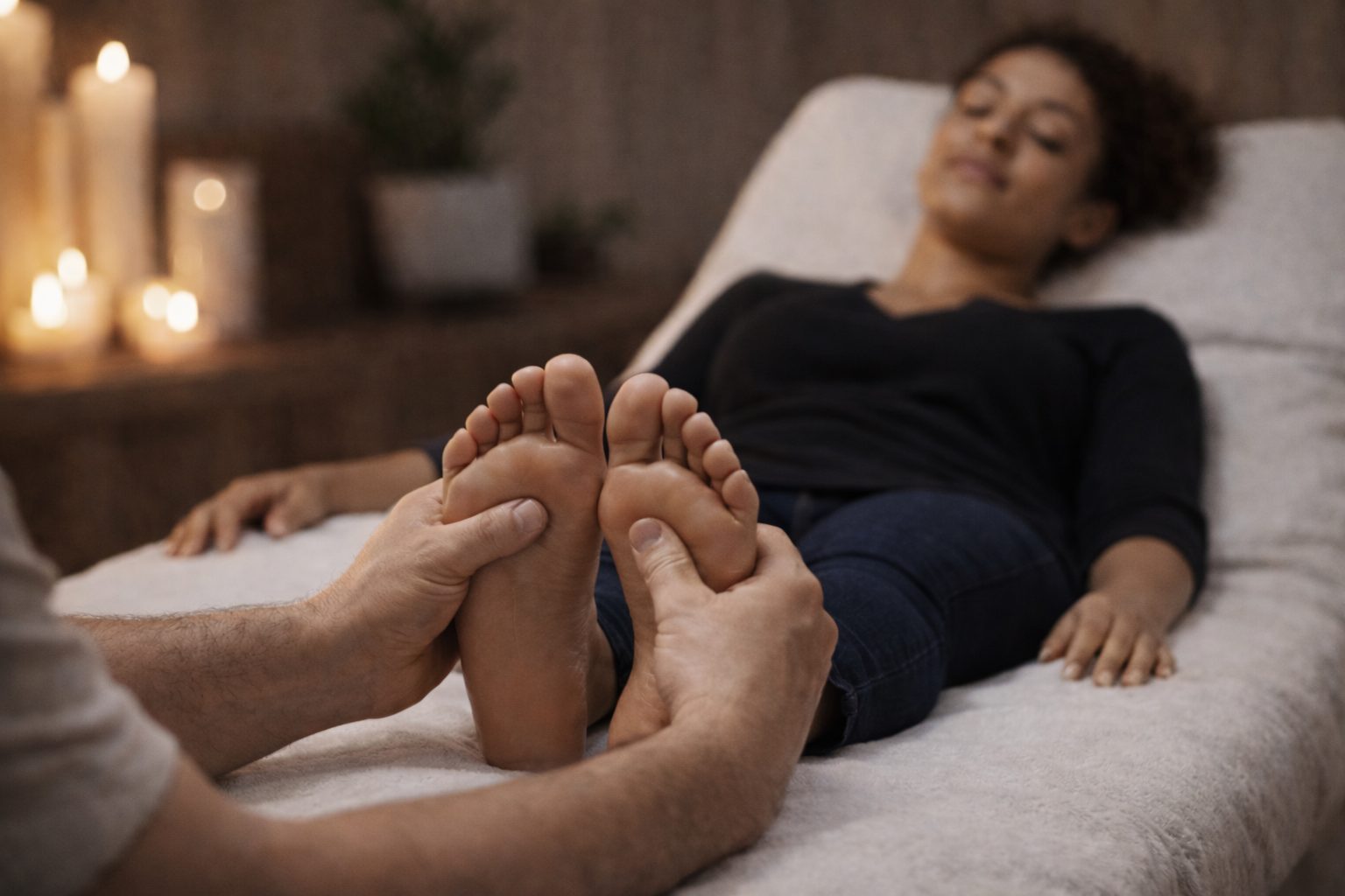 Diese Fußreflexzonen-Behandlung ist eine entspannende Wellnessanwendung – keine medizinische Therapie. Durch gezielten Druck auf die Reflexbereiche der Füße wird die Durchblutung angeregt, Spannungen können sich lösen und ein ganzheitliches Wohlgefühl entsteht.